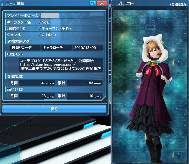 当ブログで使用してるPHANTASY STAR ONLINE2の画像は「『ファンタシースターオンライン2』著作物利用ガイドライン」に基き、PHANTASY STAR ONLINE2にて撮影した物を使用しております。