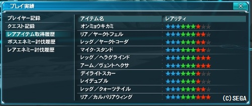 最近のレアアイテム入手状況。