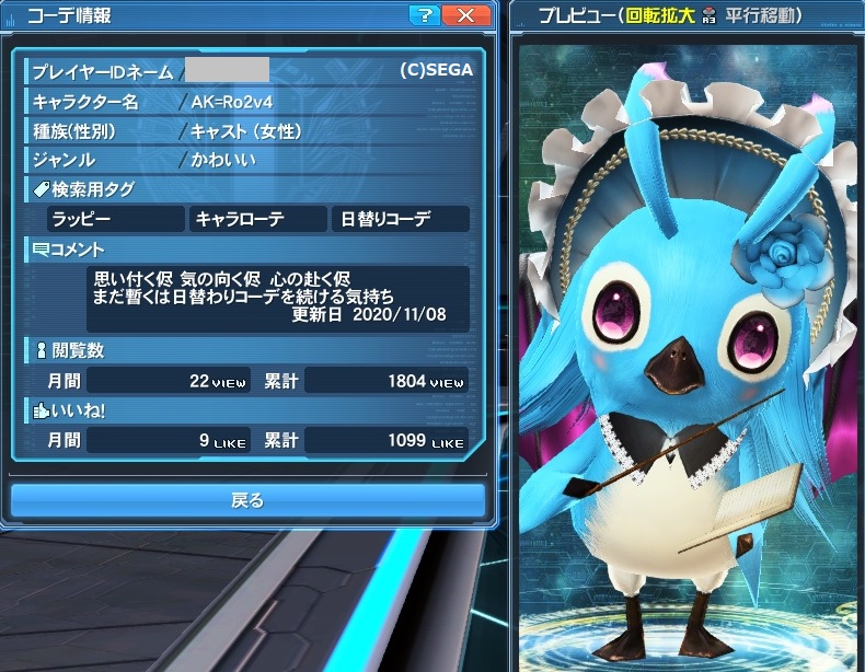 当ブログで使用してるPHANTASY STAR ONLINE2の画像は「『ファンタシースターオンライン2』著作物利用ガイドライン」に基き、PHANTASY STAR ONLINE2にて撮影した物を使用しております。