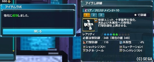 なけなしのグラとメセタを使って+10強化成功!