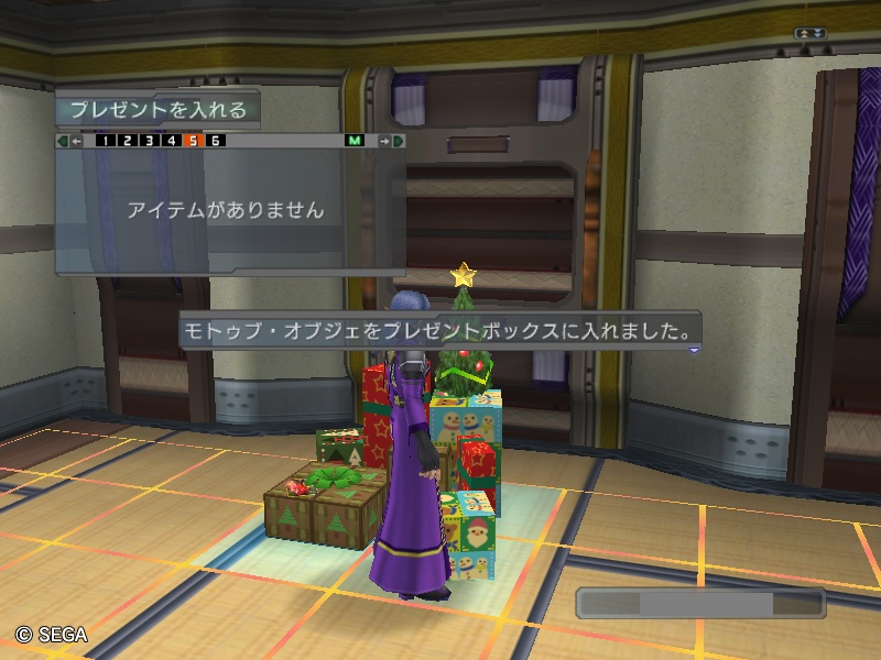 オブジェそのまま置いておくのも面白くないので、プレゼントにしてプレゼント箱に投げ込もうと思っていたのですが、プレゼント加工しちゃうとテロ箱に投げ込めれないんですね(つД`)