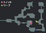 追いかけたルートを逆送する形でスイッチ(地図のピンクの丸印)に場所に戻り、スイッチを変えます。