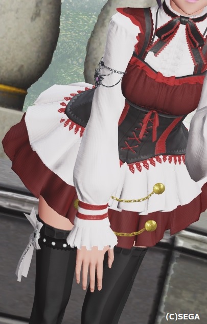 太腿のアクセを腰に回して前垂れ(って言うのか?)っぽく使ってます。