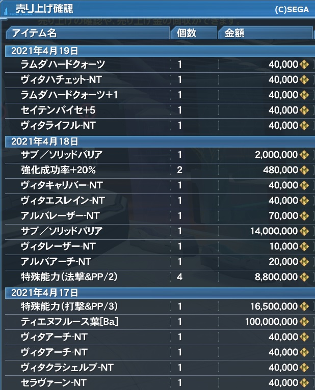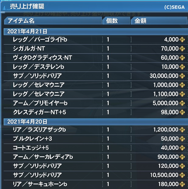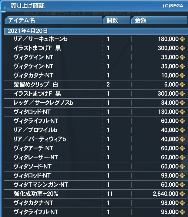 ぼった価格で置いといたPSO2衣装が売れてたのには驚きました。