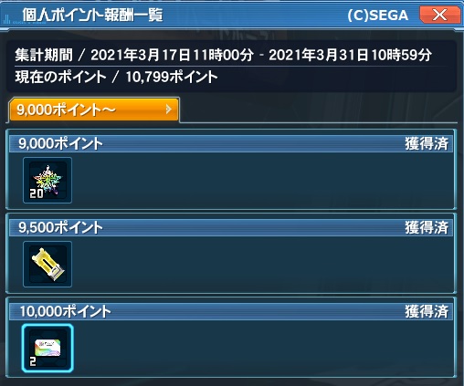 最終日緊急での駆け込みになりましたが、個人ポイントは満額終了。