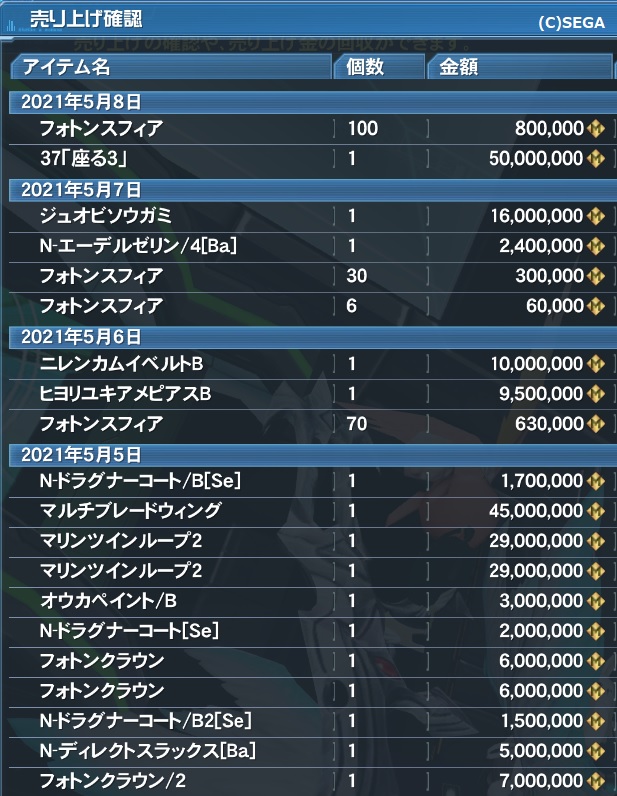 取引可能なギャザ品の中から売れそうな物だけ出品したら即売れた。