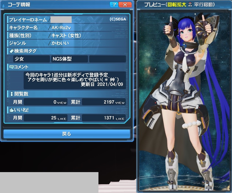 PSO2 MYキャラ(2021/02/22現在)